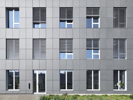 Die 2Architekten aus Bern realisierten in Moosseedorf einen Bürokomplex für die Marti Bauunternehmung. Die Bilder des stringent im Raster aufgebaute Baukörper dienen den Architekten zur Selbstvermarktung.
