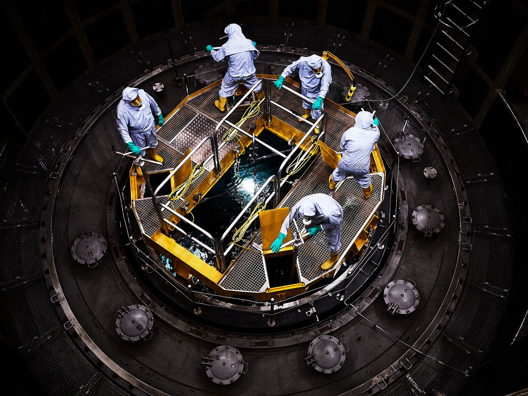 Menschen bewegen sich darin wie Teil des Gefüges. Maskiert, geschützt, und doch so sichtbar in ihrer Konzentration, in ihrem Schweiss, in der stillen Sprache ihrer Gesten. Ein Fingerzeig genügt, ein Nicken, ein gemeinsamer Atemzug – und aus Arbeit wird Vertrauen.