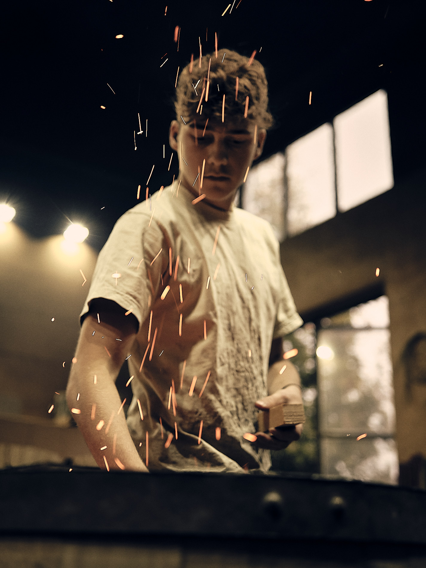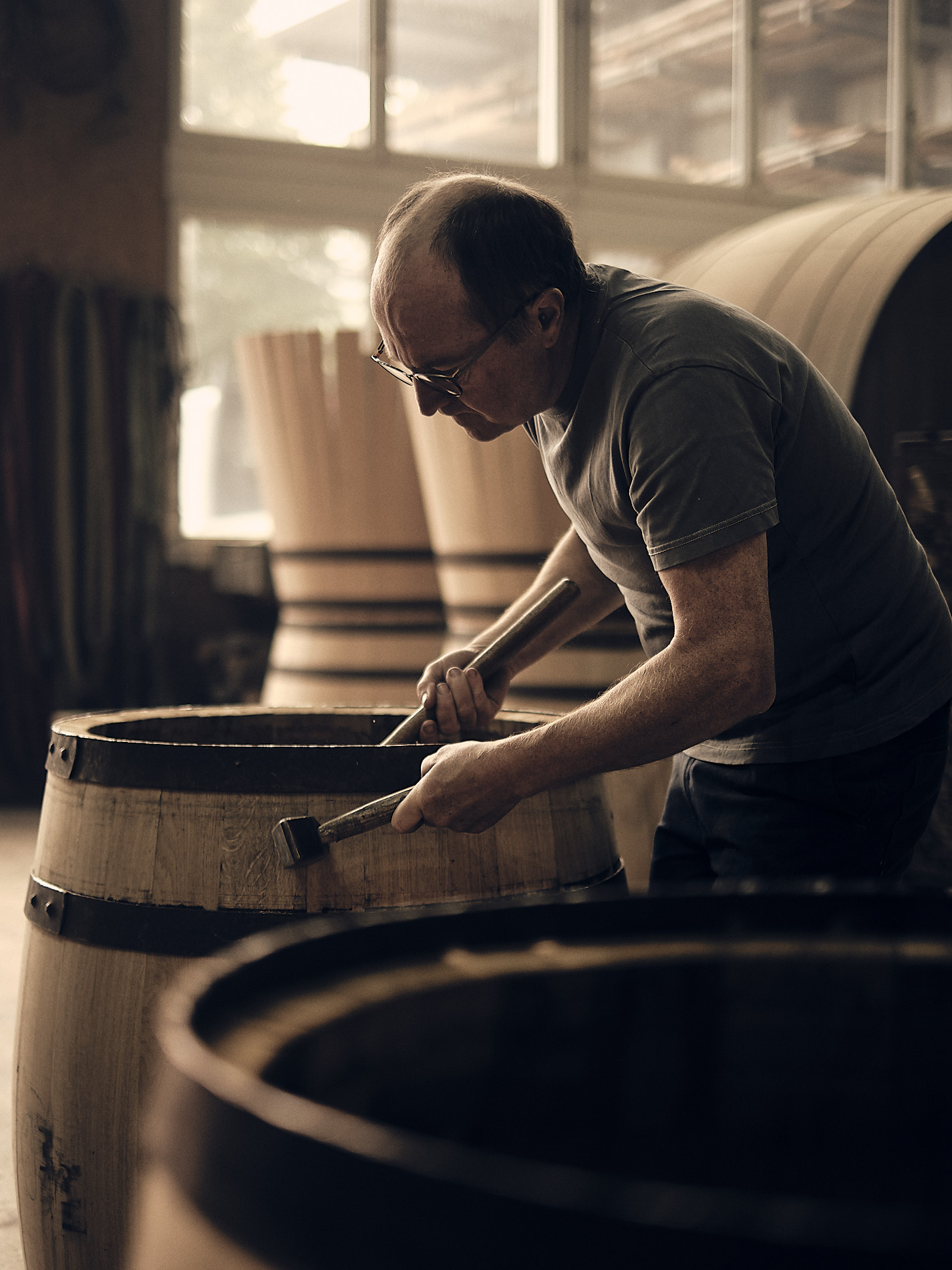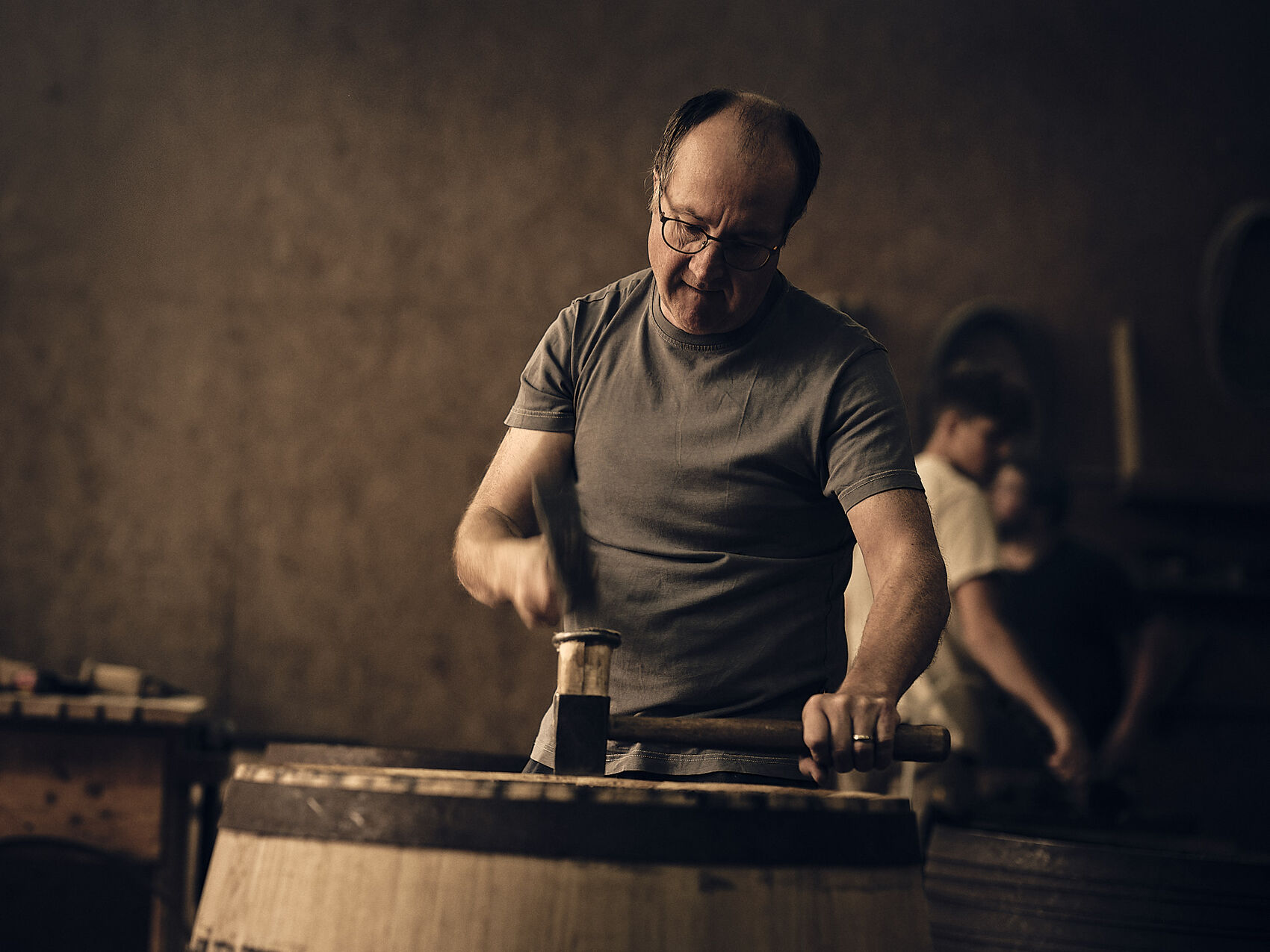 Hände greifen nach dem Holz, Hämmer schlagen wie Herzschläge, Funken tanzen durch den Raum. In der Küferei Suppiger verschmilzt Arbeit mit Rhythmus, Kraft mit Geduld, Schweiss mit Licht. Das Holz beugt sich unter der Glut, das Eisen hält es im Kreis, das Feuer zeichnet Muster in die Luft. Ein Dialog der Elemente – Holz, Feuer, Wasser, Metall – getragen von Menschen, die ihr Handwerk nicht nur beherrschen, sondern leben. Jeder Schlag ein Vers, jede Bewegung ein Takt. So entsteht ein Fass, das mehr ist als Behältnis: ein Gefäss für Geschichten, für Ausdauer und Hingabe. Roh und doch voller Poesie, schwer und zugleich lebendig.